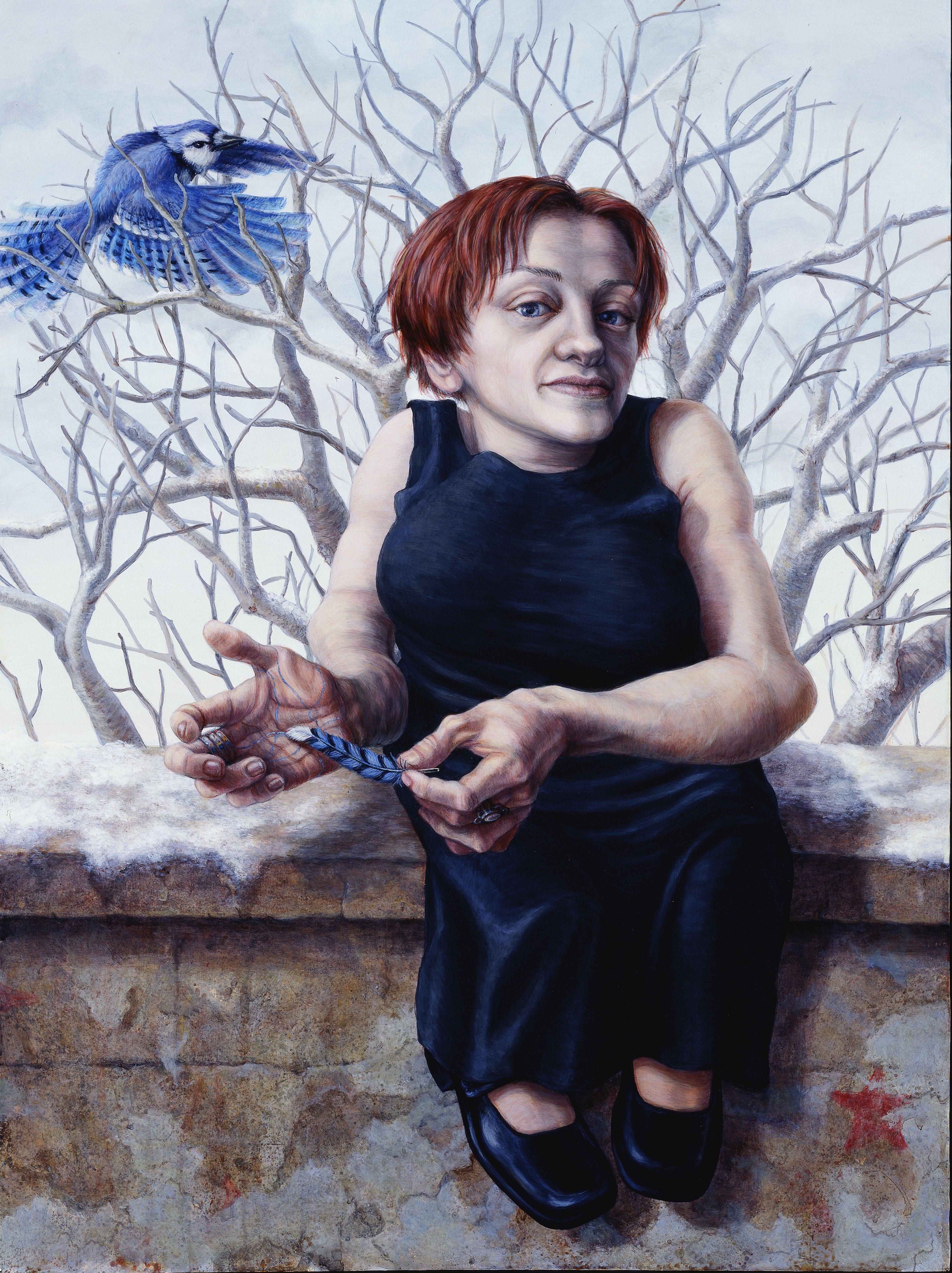 Im Jahr 2001 gab mir die Chicagoer Künsterlin Riva Lehrer die Möglichkeit, Teil ihrer Portraitserie „Circle Stories“ zu werden. Das Portrait erzählt von meiner damaligen Auseinandersetzung mit dem Thema Selbstbestimmung jenseits gesellschaftlich für mich vorgezeichneter Lebensbahnen. Szenerie und Gestaltung sind indes Riva Lehrers Kreation. Dass mein Körper zur Kunst wurde war eine wichtige Erfahrung für mich, durch die ich ihn neu und ohne Scham über seine Andersartigkeit wertschätzen konnte. Das Bild befindet sich im Privatbesitz eines Bostoner Kunstsammlerehepaares. Mehr über das Bild und Circle Stories hier.